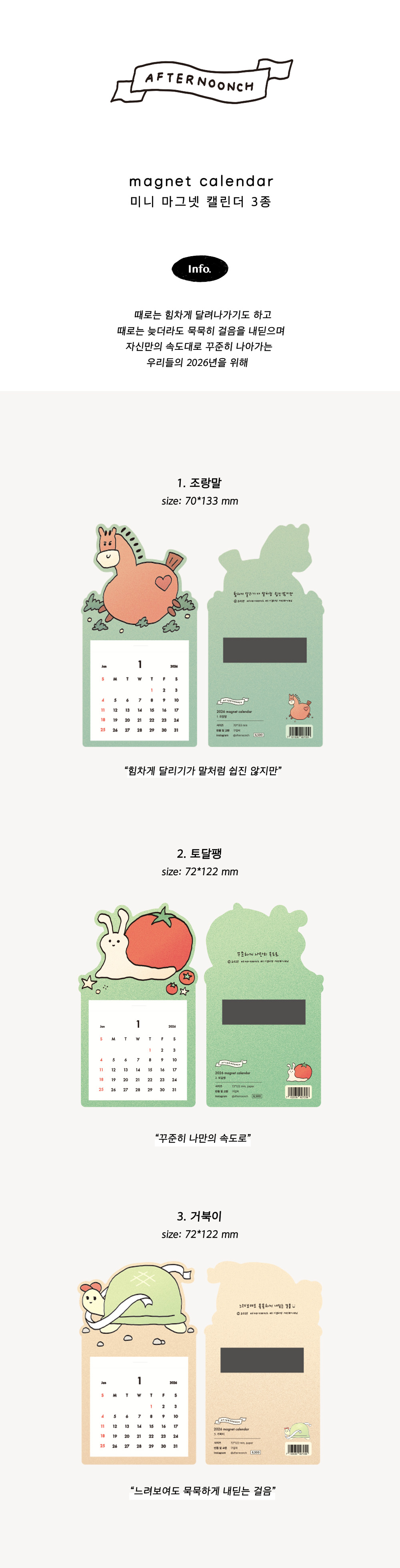 2026 미니 마그넷 캘린더 3종 (10.23 6pm open)