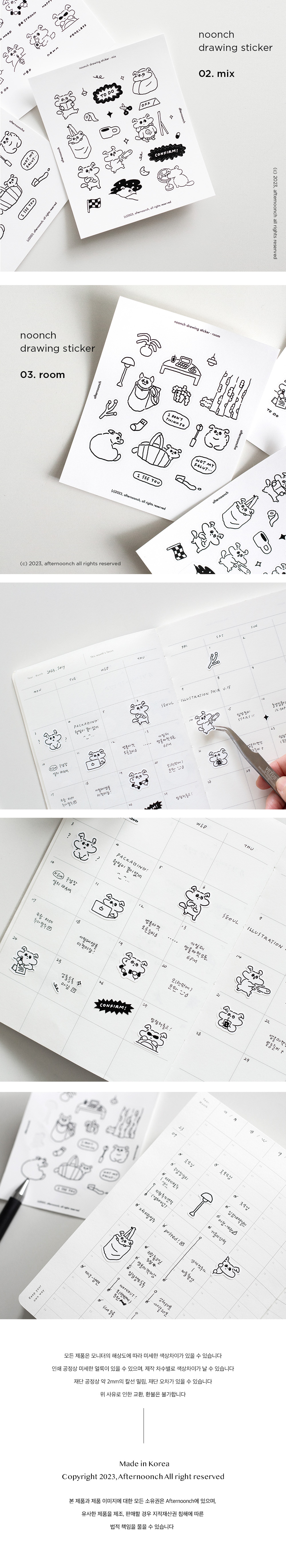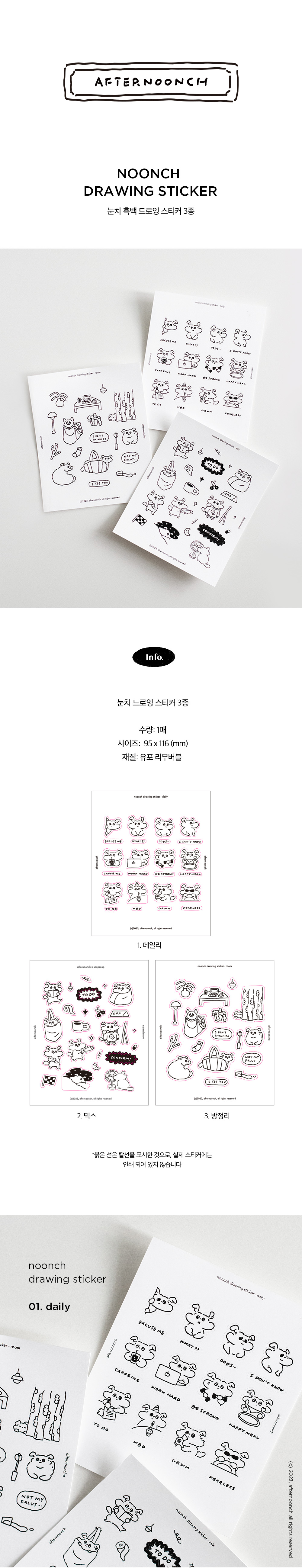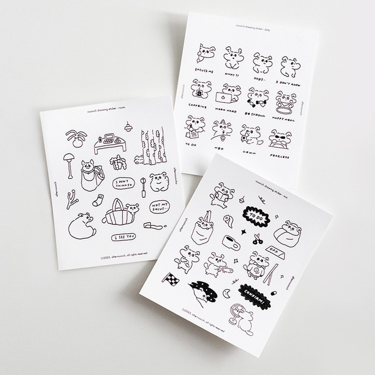 눈치 흑백 드로잉스티커 3종